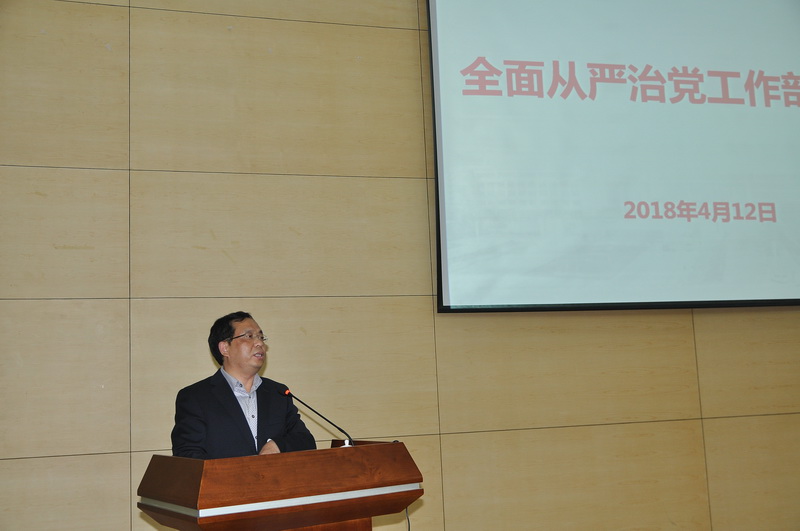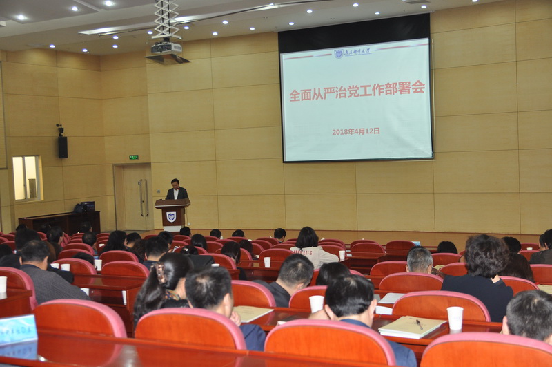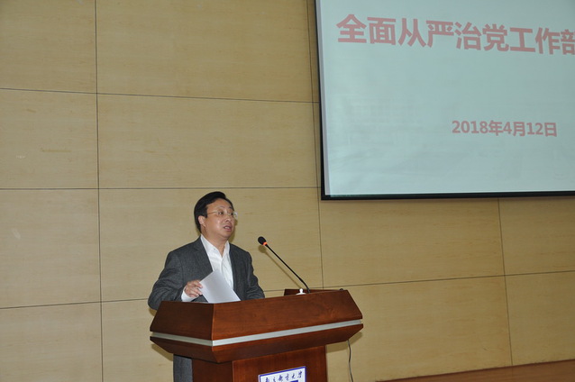 4月12日下午,我校在仙林图书馆四楼报告厅召开全面从严治党工作部署会,校党委书记刘陈讲话。全体校领导,党委委员、纪委委员,全体中层干部参加了会议。会议由校纪委书记李子全主持。