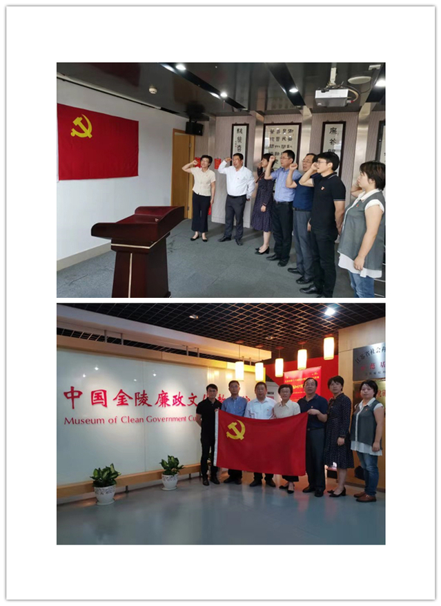 栖霞区中国金陵廉政文化教育馆分为主题展厅、廉政长廊、专题展厅、视听室和互动室五个部分。进入主题展厅前,学院党委理论学习中心组全体成员首先了解了教育馆馆徽:荷花花瓣“廉”字的寓意——为官当清廉正直,出淤泥而不染。并在“廉”镜前驻足,镜中廉中有我,我中有廉,时刻反省自身是否做到清正廉洁。在王德友馆长的讲解中,学院党委理论学习中心组全体成员接受了一次廉政文化的熏陶和洗礼。随后,学院党委理论学习中心组全体成员在鲜红的党旗下,由朱清书记的带领,重温入党誓词。