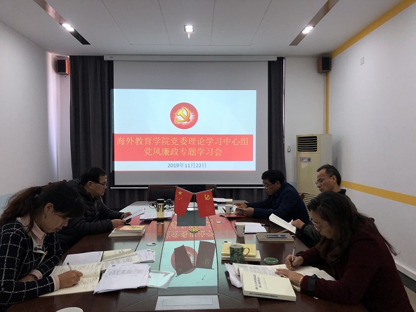 11月22日,海外教育学院党委理论学习中心组在教学一号楼208会议室召开党风廉政专题学习会。院党委书记方宗祥主持学习会。