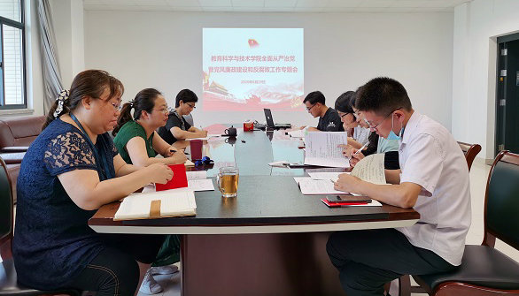 6月29日,教育科学与技术学院在文科楼426会议室召开了2020年上半年度全面从严治党暨党风廉政建设反腐败工作专题会。会议由院党总支书记彭洋主持,院党委委员、各支部书记参加会议。