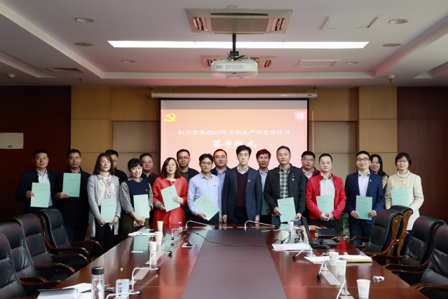 会议举行了《机关党委2020年全面从严治党责任书》签字仪式。汝一飞书记同机关党委委员、党支部书记分别签订了责任书。