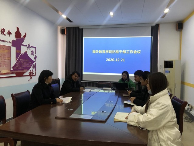 12月21日,海外教育学院召开纪检干部工作会议,学院党委书记丁静,党风联络员宋贞臻,特邀检察员胡琦石以及教工党支部书记金梅、纪检委员吴小海参加了会议,会议由学院党委副书记、纪检委员于景宝主持。
