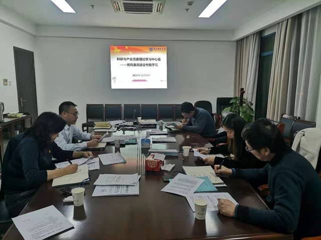 12月4日,科研与产业党委理论学习中心组在仙林校区行政北楼405会议室召开党风廉政建设专题学习会。全体党委委员参加会议,会议由科研与产业党委书记赵夙主持。
