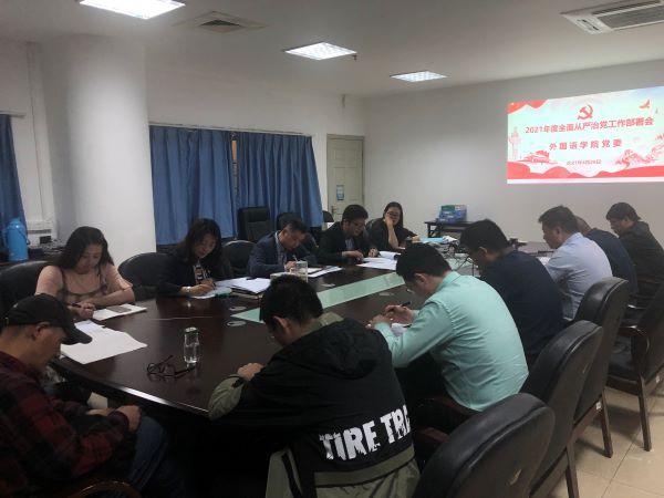 与会人员深入学习了《中共南京邮电大学外国语学院委员会2021年度全面从严治党主体责任清单、“第一责任人”责任清单、“一岗双责”责任清单》、《中共南京邮电大学外国语学院委员会2021年度全面从严治党监督责任清单》、《关于开展2021年监督检查工作的通知》等文件精神。