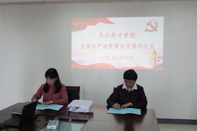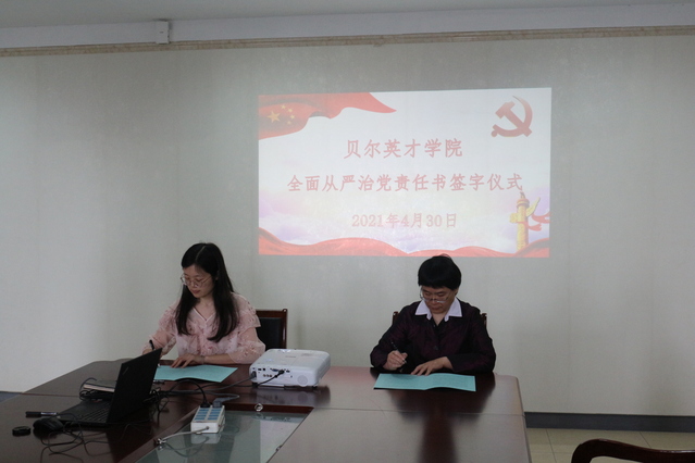 为贯彻全面从严治党要求,落实全面从严治党责任,4月30日,贝尔英才学院党总支举行全面从严治党责任书签订仪式。院党总支书记张玲华主持会议,学院领导班子成员和各支部书记参加会议。
