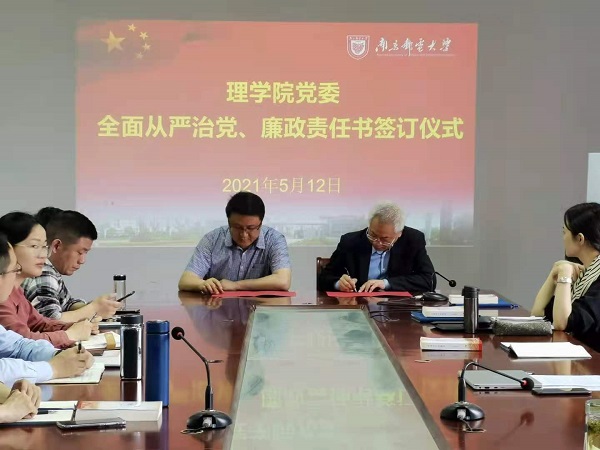 随后,党委副书记、院长唐加山代表尹志丽书记与院领导班子签订了全面从严治党责任书,院党委副书记、副院长汪颖代表尹志丽书记与理学院各党支部书记签订了全面从严治党责任书,院领导分别与其分管系(中心)主任、科职干部签订了全面从严治党责任书、廉政责任书。