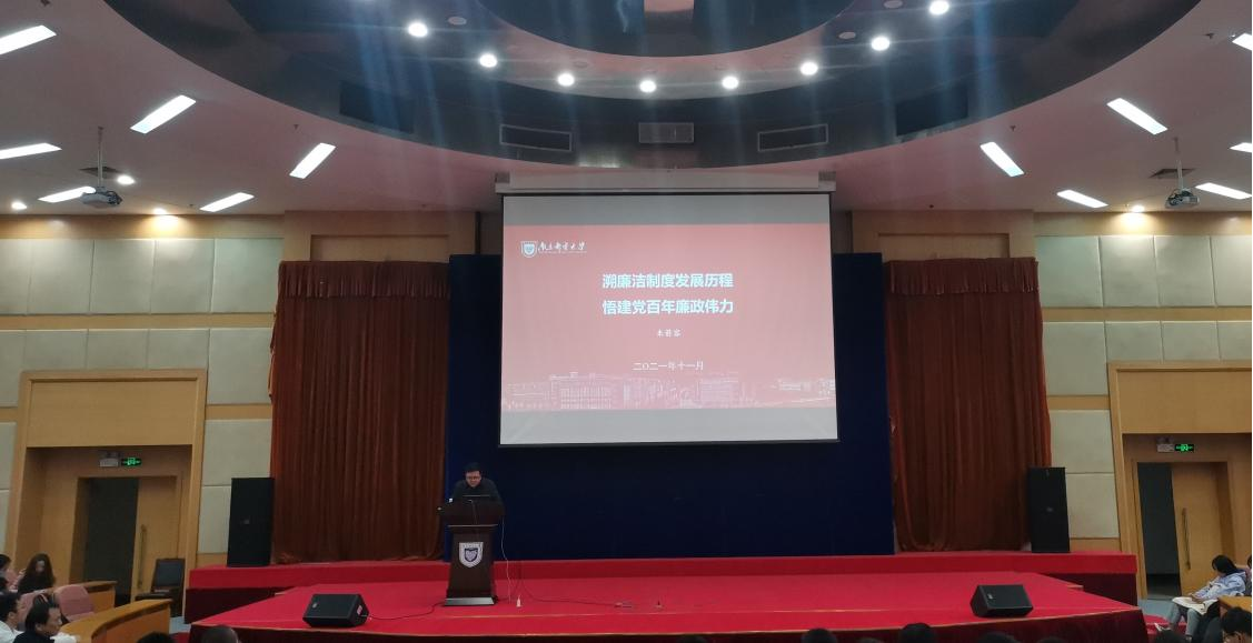 2021年11月10日,南京邮电大学管理学院特邀朱箭容老师在科技会堂以《溯廉洁制度发展历程,悟建党100周年廉政伟力》为题,给青年教师开展思想政治教育讲座。管理学院副院长、纪检委员魏建香主持,管理学院党支部纪检委员、近两年入职的青年教师代表参加本次讲座。