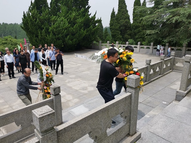 校纪委委员张登银、学院纪检委员徐磊分别为与会人员讲了一堂微党课。党课结束后,全体人员绕场一周,瞻仰烈士陵园,向逝去的英烈致敬。
