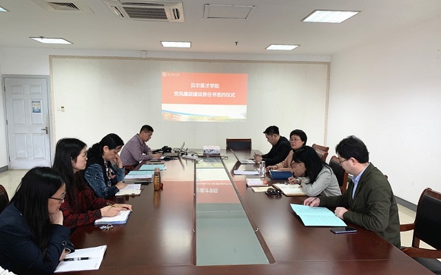 学院党总支副书记、纪委委员郭强领学《党风廉政建设责任书》主要内容,明确学院党员干部在党风廉政建设中的工作职责和任务分工,明确坚持民主集中制原则和严格执行“三重一大”制度,强调全院全员要深入贯彻落实中央八项规定和学校纪律规章,紧盯“四风”问题新表现新动向,持之以恒正风肃纪。