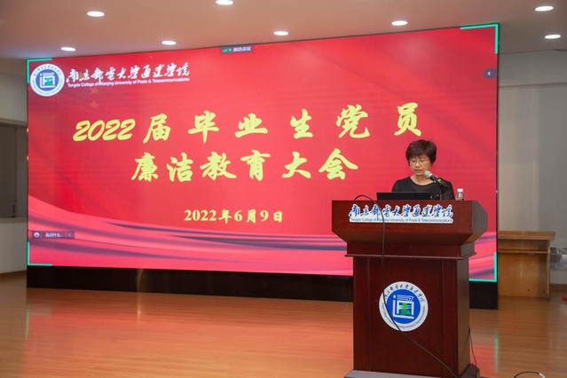 会上,卞文献主任宣读学院纪委致2022届毕业生的一封信,并希望在场的毕业生党员引导身边同学传递廉洁思想、践行廉洁行为。她勉励大家擦亮忠诚底色,做胸怀理想、志存高远的新时代“追梦人”;擦亮干净本色,做持廉守正、行稳致远的新时代“排头兵”;擦亮担当成色,做起而行之、勇挑重担的新时代“领头雁”。