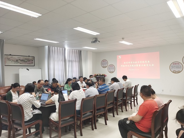 6月15日,教育科学与技术学院党委在文科楼426大会议室召开师德师风专题会暨警示教育大会。会议由学院党委书记彭洋主持,学院全体教职工参加会议。