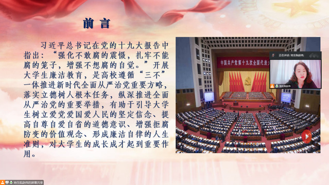 为增强大学生拒腐防变的价值观念、形成廉洁自律的人生准则,9月16日上午,地理与生物信息学院党委副书记、副院长赵伟通过腾讯会议为全体新生开展了廉洁主题教育讲座,2022级全体本科生参加了教育活动。