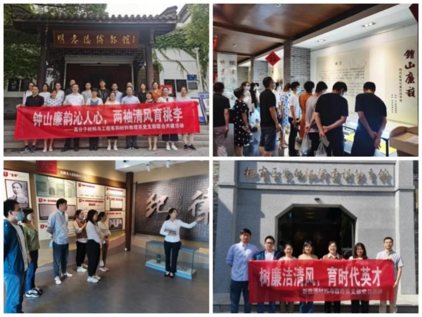 高分子系党支部、材料物理系党支部联合开展“钟山廉韵沁人心,两袖清风育桃李”主题活动,于6月24日前往南京市廉政教育基地明孝陵博物馆参观《钟山廉韵——明代监察官廉洁故事展》。新能源材料与器件党支部开展“喜迎二十大,树廉洁清风,育时代英才”主题活动,于9月29日前往南京市栖霞区党的纪律建设教育馆参观学习。各位党员同志纷纷表示将自觉在见贤思齐中传承优秀品质、汲取精神力量,在落实立德树人根本任务过程中加强廉洁自律道德操守,夯实清正廉洁思想根基,筑牢拒腐防变思想防线,积极发挥廉洁文化启人心志、温润心灵、固本培元的重要作用,为学校教育高质量发展提供坚强的政治保证和思想保证。