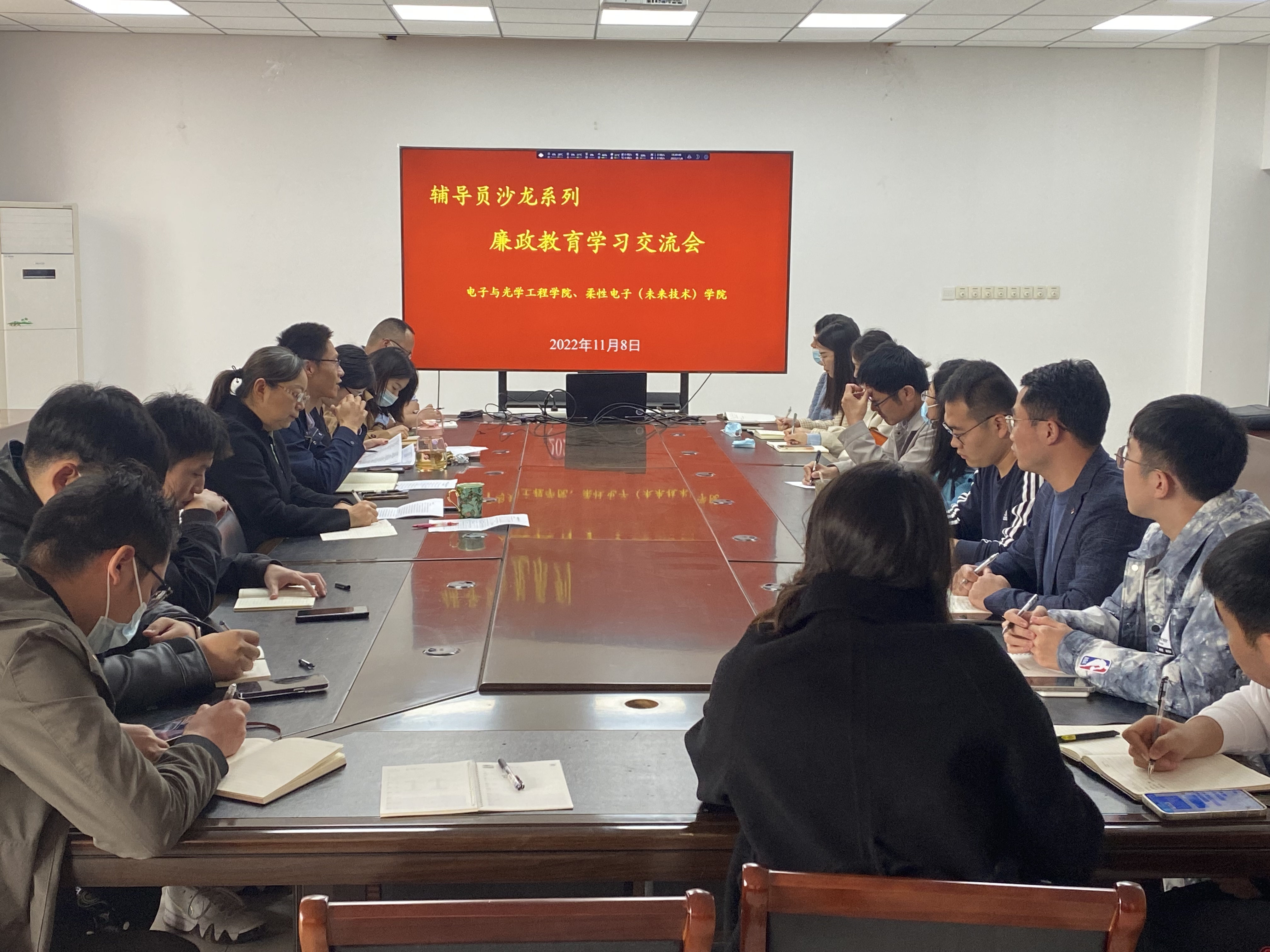 11月8日下午,电子与光学工程学院、柔性电子(未来技术)学院召开辅导员廉政教育学习交流会,学院纪检委员宋健康参加交流,院党委副书记、副院长徐磊主持会议。
