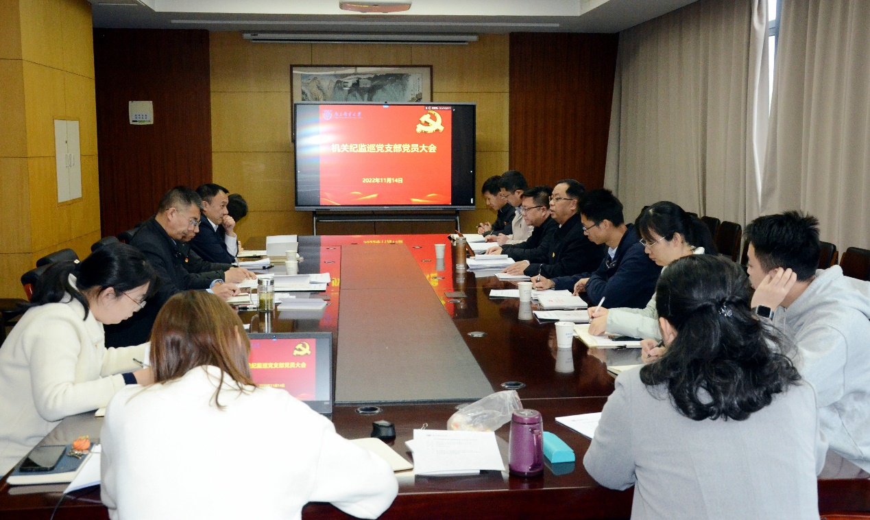 11月14日下午,机关纪监巡党支部在行政楼第三会议室召开党员大会。党支部书记朱箭容主持会议,校党委第一巡察组成员宋健康,机关党委副书记胡策,机关宣传部党支部副书记、宣传部副部长张丰列席会议。