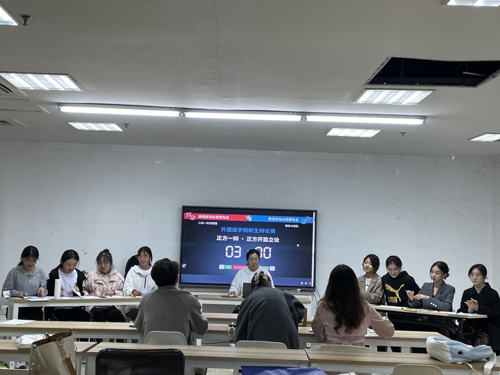 在喜迎党的二十大胜利召开之际,10月13日,外国语学院举办“清廉杯”新生辩论赛,积极落实“校园廉洁文化月”活动部署要求。紫金辩论社指导老师饶清强、校辩论队优秀辩手郑欣杰、张鸿芸、施凯耀担任本次比赛评委。