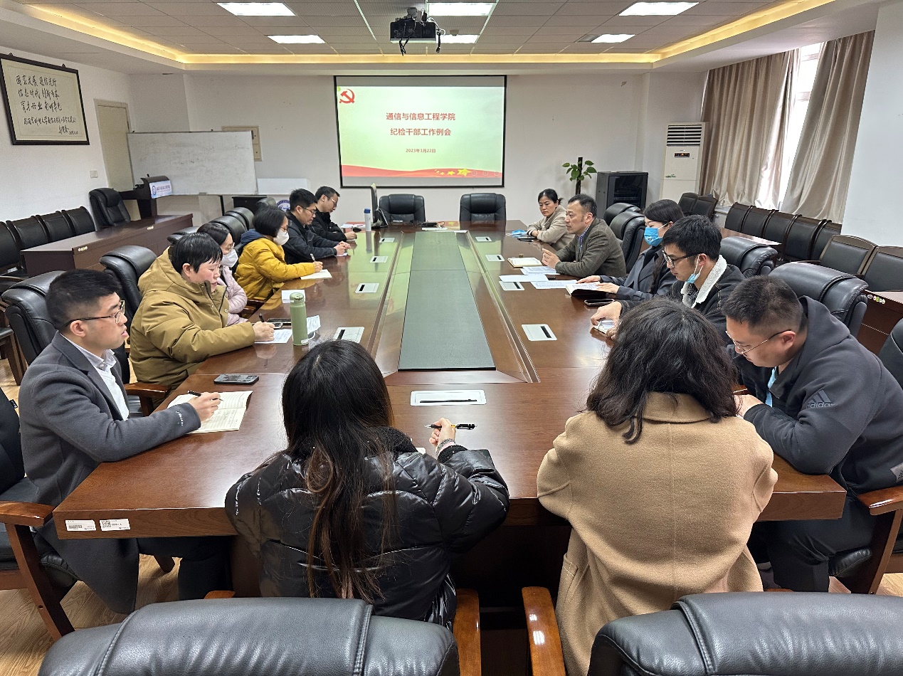 3月22日,通信与信息工程学院党委召开纪检干部工作例会。学院纪检委员朱鹏飞出席并主持会议,教工、本科生党支部纪检委员、党风联络员参加会议。