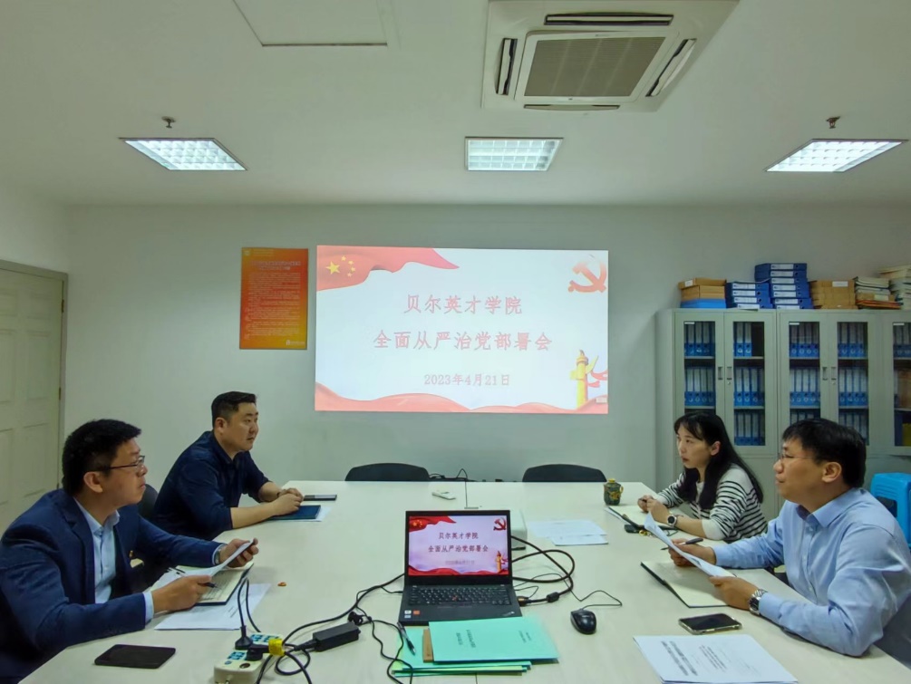 为全面贯彻落实党的二十大精神,进一步压紧压实全面从严治党政治责任,坚持不懈把全面从严治党向纵深推进,4月21日上午,贝尔英才学院党总支召开2023年度全面从严治党工作部署会。院领导班子成员和各党支部书记参加会议,党总支书记张腾飞主持会议。