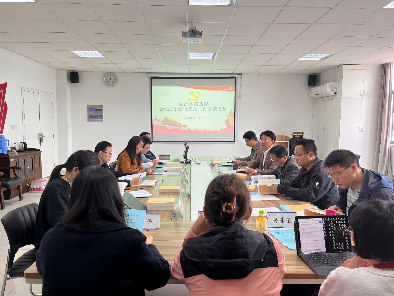 为进一步坚持和加强党对意识形态工作的全面领导,明确和落实学院党委领导班子和党员干部的意识形态工作责任,切实担负起全面从严治党的主体责任。4月23日中午,经济学院党委在文科楼529会议室召开2023年意识形态工作专题会议。经济学院党政领导,科职干部,各党支部支部书记,各部门负责人参加会议,会议由经济学院党委书记董军主持。