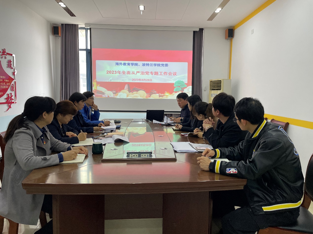 4月28日上午,海外教育学院、波特兰学院党委在教1-208会议室召开2023年全面从严治党专题工作会议。学院领导班子成员、党支部书记、党风联络员、特邀监察员、支部纪检委员参加会议,学院党委书记丁静主持会议。