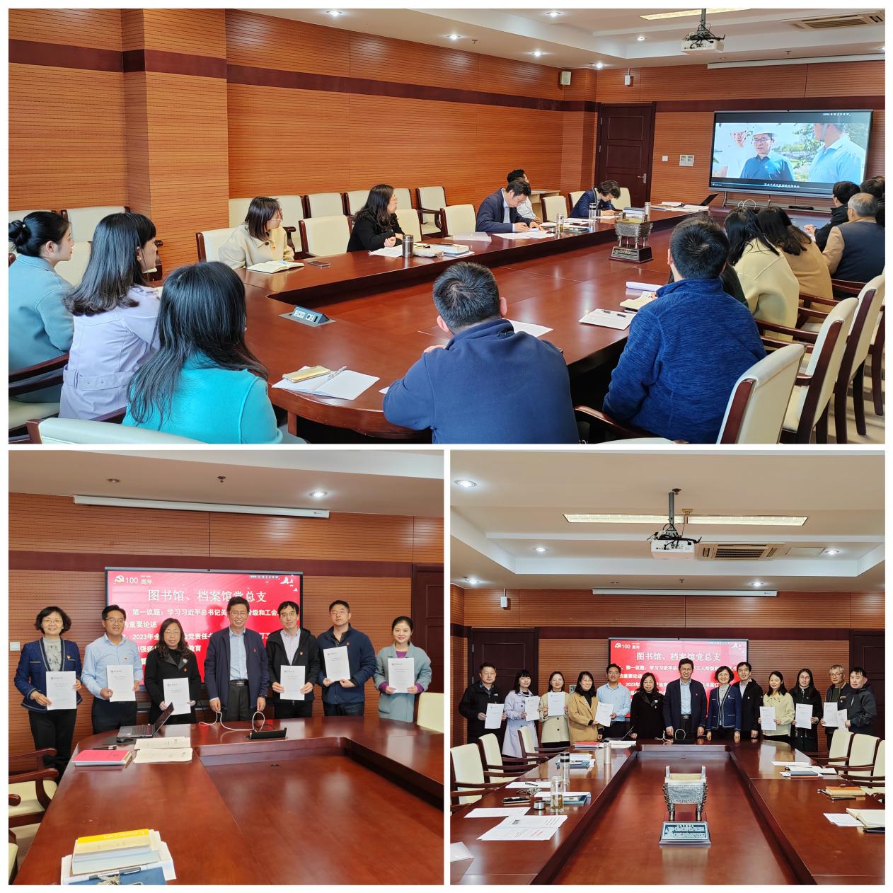 会上,党总支书记与其他班子成员、各党支部书记签订了《图书馆、档案馆2023年度全面从严治党责任书》,班子其他成员与分管科长、部主任签订了《图书馆、档案馆2023年度廉政责任书》。
