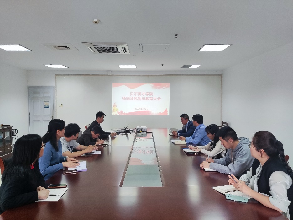 教师是立校之本,师德是教育之魂。为全面贯彻党的教育方针,全面推进依法治教,落实立德树人根本任务,进一步加强教师队伍师德师风建设,5月12日下午,贝尔英才学院召开师德师风警示教育大会,会议由党总支书记张腾飞主持,全体教师参加了会议。