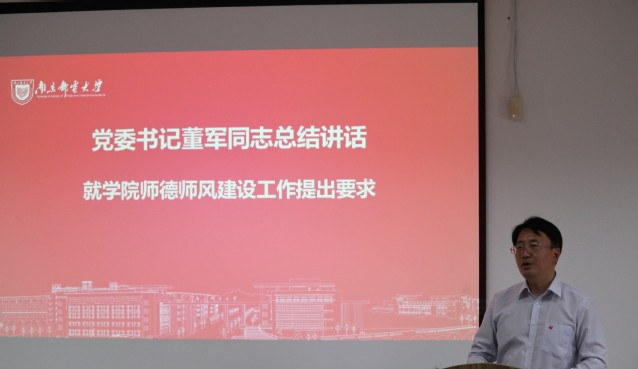 通过此次师德师风建设工作部署会,希望经济学院全体教职工能够坚定理想信念、厚植爱国情怀、涵养高尚师德,自觉做以德立身、 以德立学、以德施教、以德育德的楷模。