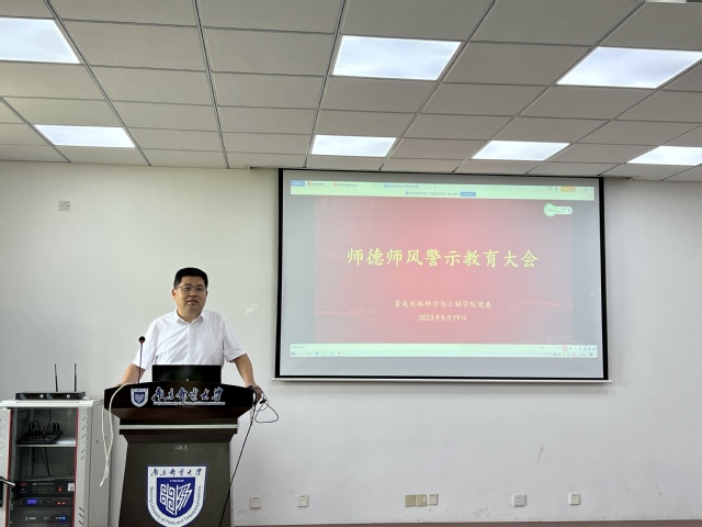 为提升学院教师思想政治素质和师德师风水平,5月19日,集成电路科学与工程学院党委召开了全院教师师德师风警示教育大会,会议由院党委书记高翔主持,学院全体教师参加。