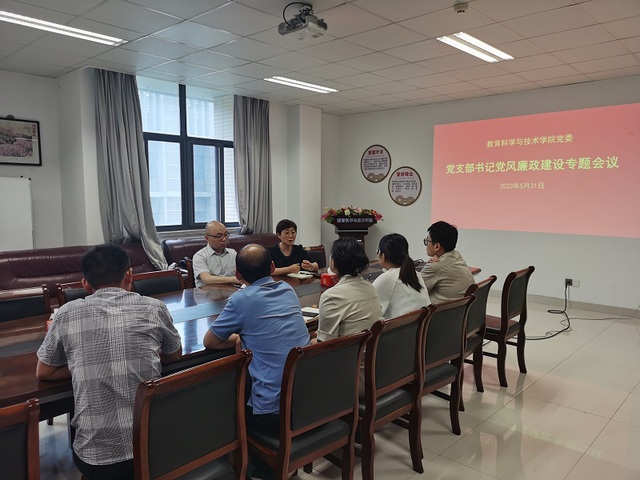 为深入贯彻落实全面从严治党要求,坚定不移推进学院党风廉政建设工作深入开展,5月31日下午,教育科学与技术学院党委召开党支部书记党风廉政建设专题会议,学院党委书记彭洋主持会议,学院全体党支部书记参加。