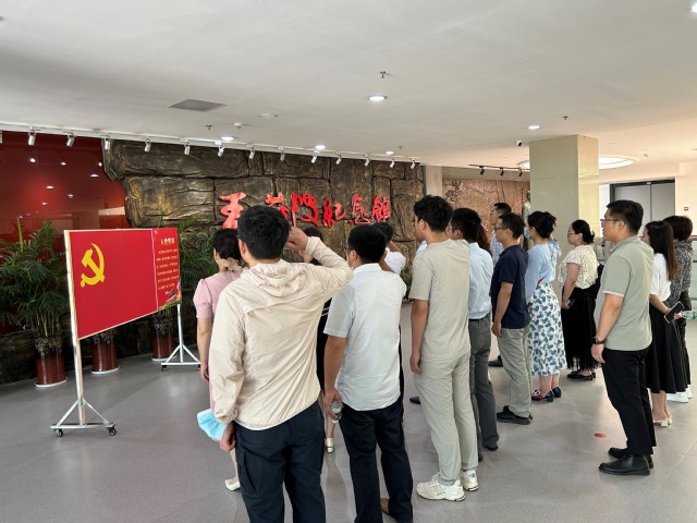 参观结束前,在学院党委书记朱治安的领誓下,大家面向鲜艳的党旗,举起右拳,一同庄严宣誓,重温了入党誓词。随后,朱书记对此次活动作了总结发言,他强调,要继续扎实开展学习贯彻习近平新时代中国特色社会主义思想主题教育,进一步坚持用习近平新时代中国特色社会主义思想凝心铸魂,厚植爱国爱党情怀,时刻把党性刻在心上,增强廉洁意识,以实际行动为学院、学校的高质量发展贡献智慧和力量。