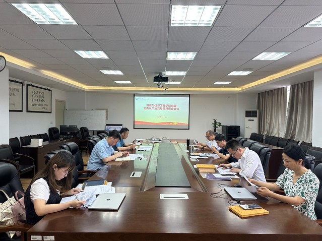 6月19日,通信与信息工程学院党委在学院208会议室召开全面从严治党专题党委会会议,分析研判党风廉政建设和反腐败工作。学院党委班子成员参加会议。会议由学院党委书记徐雷主持。