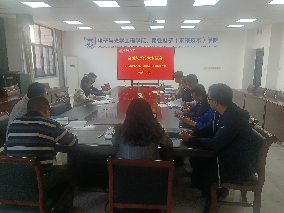 11月2日下午,电子与光学工程学院、柔性电子(未来技术)学院召开全面从严治党专题会,学院领导班子成员、院长助理、科职干部、党委组织员、党风联络员、特邀监察员等参加会议,会议由学院党委书记黄丽亚主持。