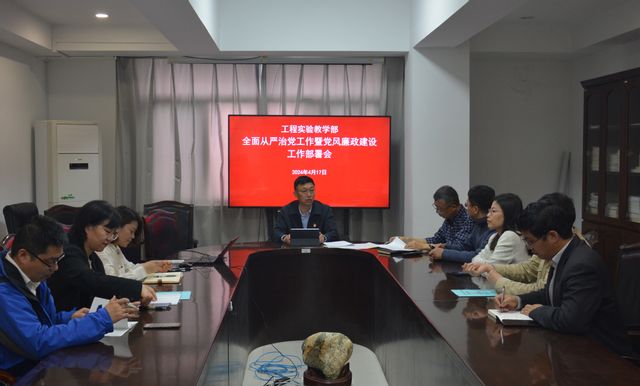 按照学校2024年全面从严治党工作部署会会议精神要求,工程实验教学部党总支于4月17日下午在工程训练楼503会议室召开了全面从严治党工作暨党风廉政建设工作部署会。会议由部党总支书记张强主持,部总支委员、党支部正副书记、中心主任、党风联络员、特邀监察员等参加。