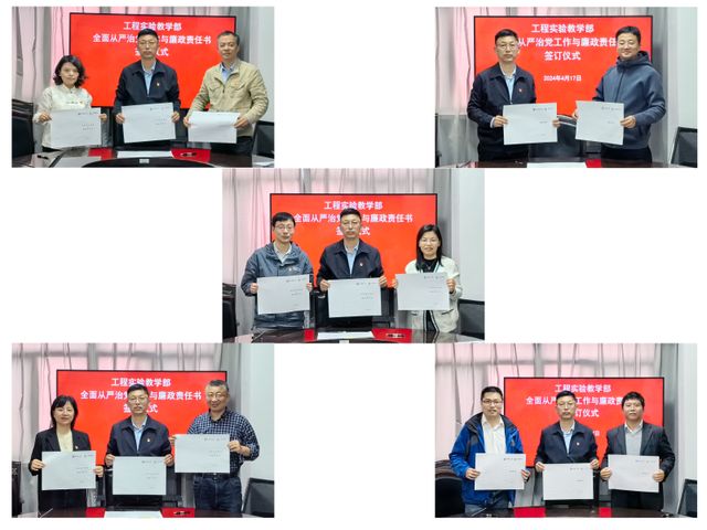 最后,进行了全面从严治党和党风廉政责任书签订仪式。部总支书记、分管部领导分别与各支部书记、中心主任等签订责任书。