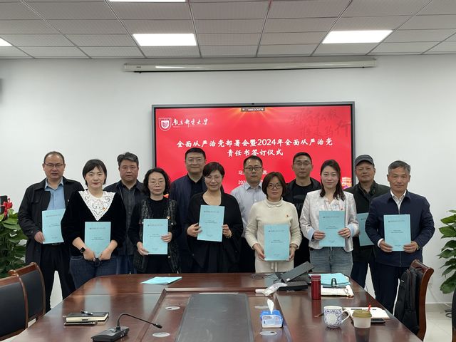 李大伟书记与党委班子成员、全体支部书记及办公室主任签订全面从严治党责任书。其他班子成员分别与所联系的教学机构负责人、支部书记一一签订责任书。