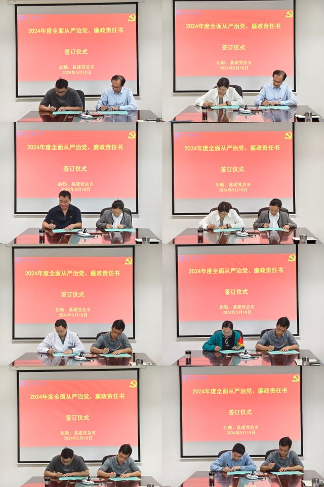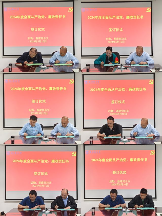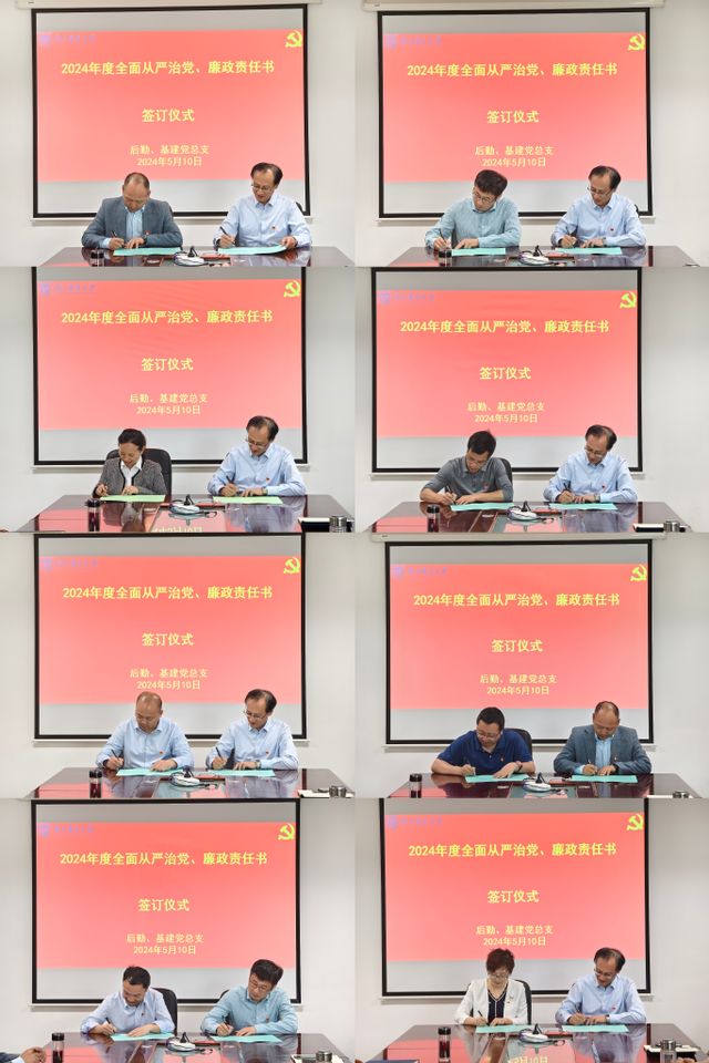 5月10日上午,后勤、基建党总支在仙林校区学生事务服务中心409会议室举行2024年度全面从严治、廉政责任书签订仪式。全体处级领导班子、各科室负责人、党支部书记参加会议,会议由党总支书记、后勤管理处处长、后勤服务集团总经理朱国平主持。