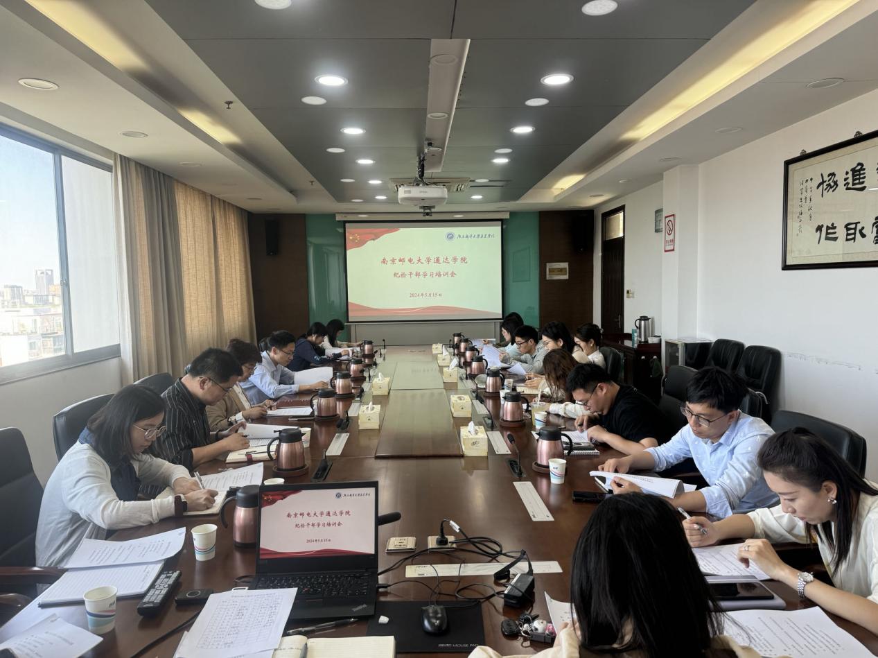 会议传达学习了《中共中央办公厅关于在全党开展党纪学习教育的通知》精神,认真学习了近期中央纪委国家监委通报的8起违规吃喝典型问题和扬州市纪委监委公开通报的3起违反中央八项规定精神典型案例,学习了《中共南京邮电大学通达学院纪律检查委员会2024年度落实全面从严治党监督责任清单》《2024年重点工作监督检查方案》。