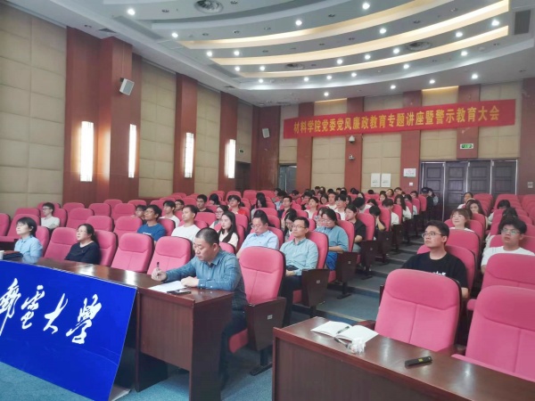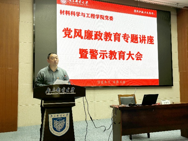 为加强廉洁纪律学习,筑牢师生党员拒腐防变的思想防线,扎实推进学院党纪学习教育,5月15日下午,材料科学与工程学院党委邀请中共江苏省委党校廉政教育研究中心原主任王世谊教授开展专题报告。讲座由学院党委书记、党委理论学习中心组组长高志华主持。学院党委理论学习中心组全体成员、师生党员代表和积极分子学员参加本次报告会。