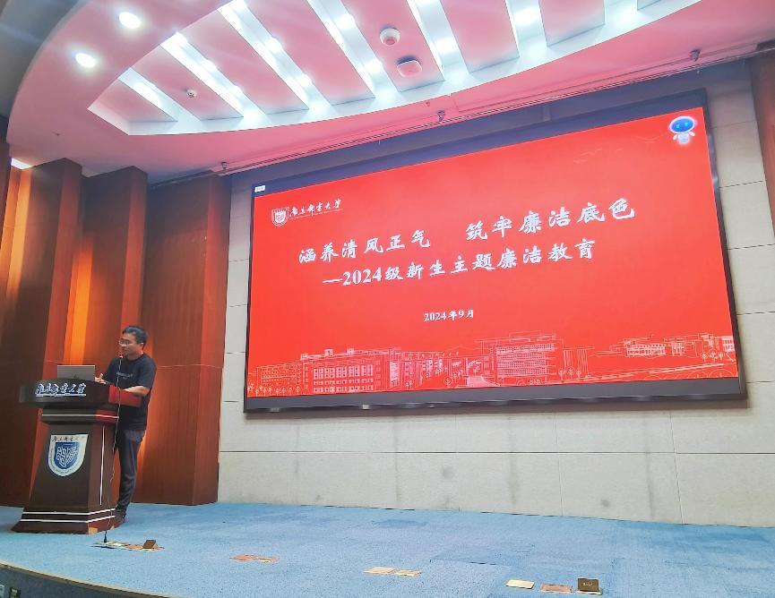 为进一步加强学生的廉洁自律意识,贝尔英才学院2024级全体新生于9月10日在中天科技报告厅开展“涵养清风正气,筑牢廉洁底色”廉洁教育主题讲座。此次活动旨在引导学生深入学习党的纪律和规矩,提高廉洁自律意识,争做新时代的廉洁表率。