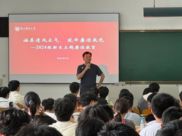 最后,吉峰老师对新生们提出了殷切期望。他希望新生们能够始终保持对廉洁的敬畏之心,不断加强自我修养和锤炼,做到言行一致、表里如一。在今后的学习、生活中,要遵守校纪校规、诚实守信、注重个人作风,将廉洁自律化为自身的准则与追求,争做有理想、有担当的时代青年。