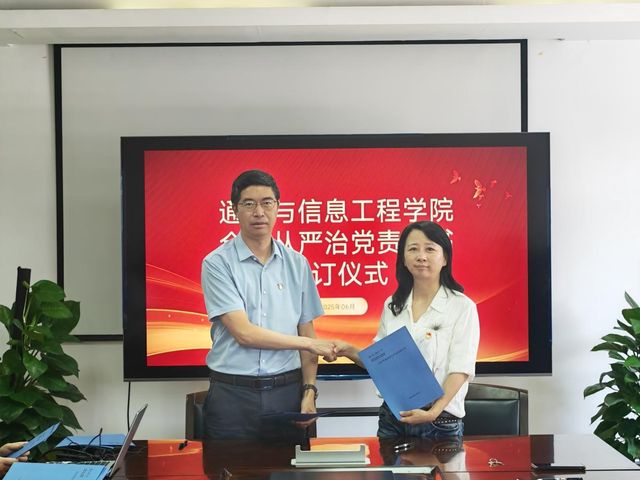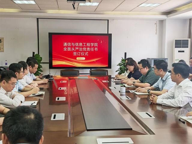 6月24日,通信与信息工程学院党委在科研楼208会议室举行2025年度全面从严治党、廉政责任书签订仪式。学院领导班子成员、科职干部、各党支部书记以及系、所(院)、中心负责人参加了会议。会议由学院党委副书记王小露主持。